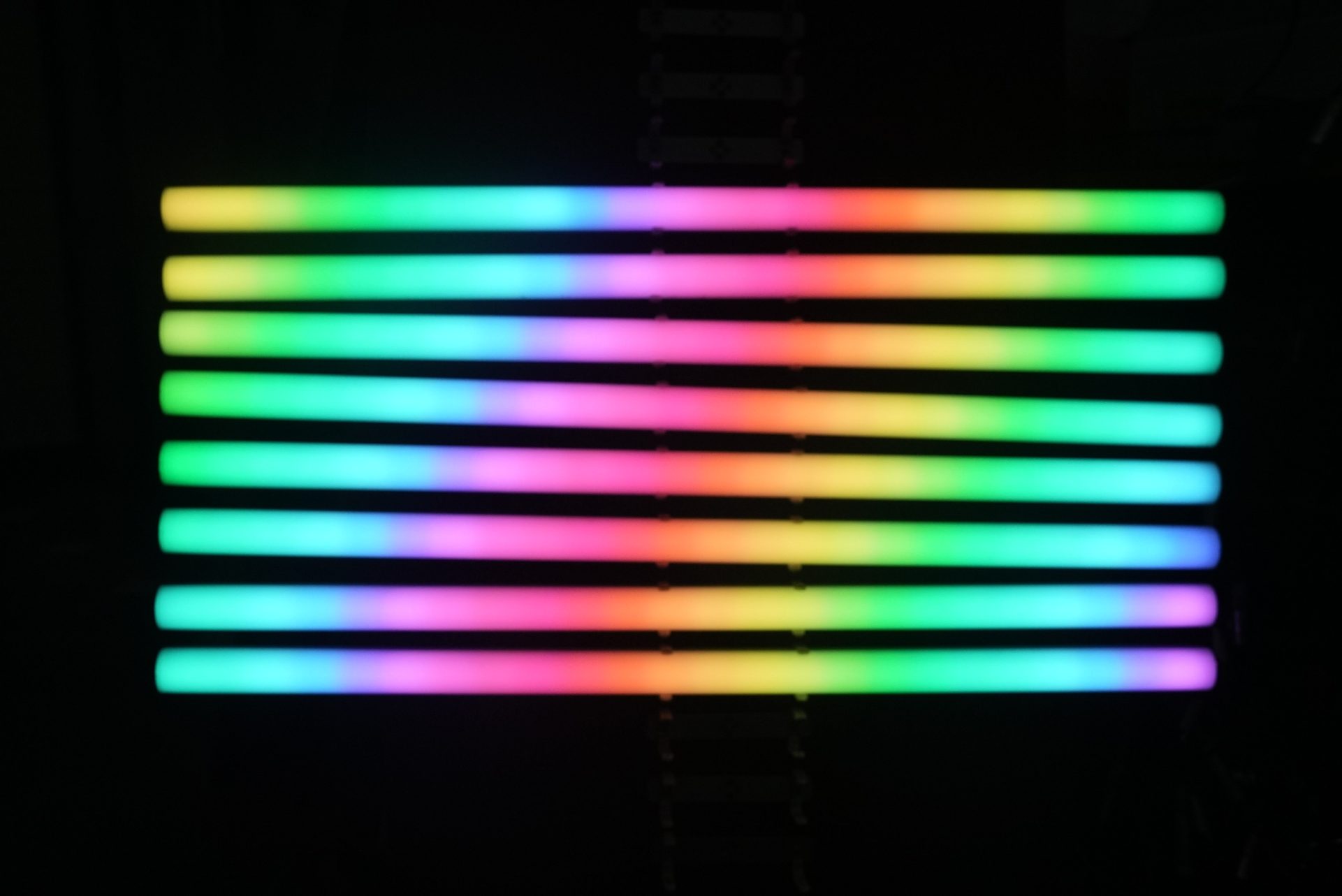 Our tubes have a higher-than-average pixel density relative to comparable products. With the dimensions of the tube (42mm by 1050mm), each pixel forms a perfect square (~42x42mm). This ensures videos and images look proportional with reduced distortion. The higher pixel count also means that colour gradients, visual transitions, and effects are smooth.